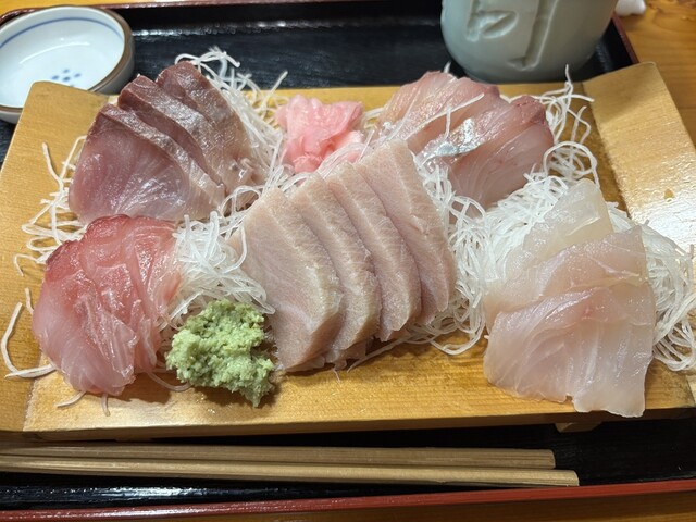 刺し盛りは中トロ、トロ、鰤、カンパチ、鯛。