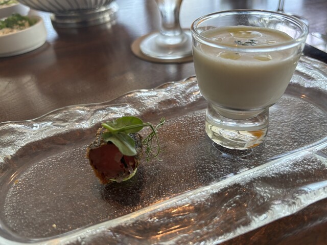 アサリの酒蒸しはこれ蛤並みの大きさで身がぷりぷりしてます。サラダはマンゴーソースがマッチしておりインゲンがアクセントになっていて美味しかった!...