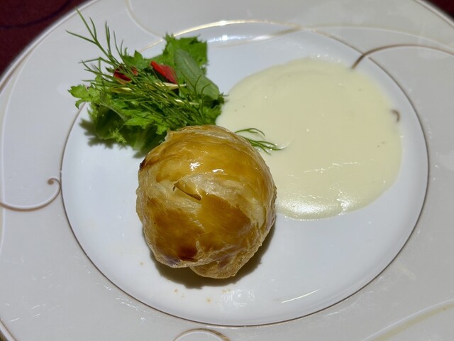 サーモンのアンクルートあさりのクリームソースは、パイ生地に包まれたサーモンとあさりのソースの組み合わせが、かなり美味しい✨