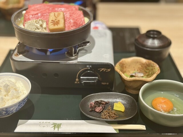 上品な店内で半個室に座り、すき焼きランチを楽しみます!ご飯やお味噌汁もついて、美味しいお肉も食べれて、半個室で1200円は圧倒的な高コスパ!