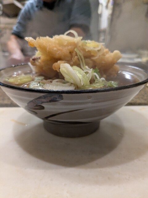 冷やしはかき揚げのできに大きく左右されますので油断ならないですが、今回のは熱々美味しいかき揚げでした。