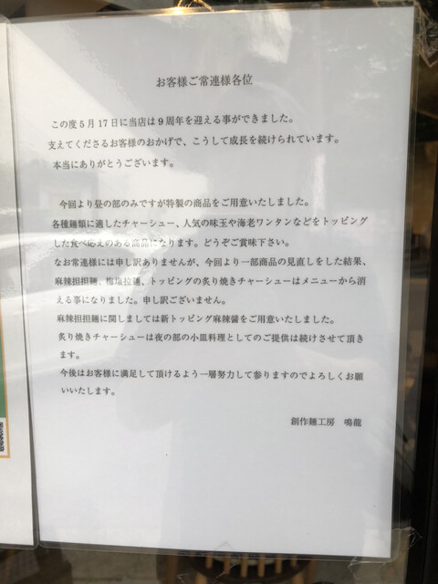 個人的な感覚で言うと、鳴龍に通い始めた頃(12〜3年前!?)に衝撃を受けたあの旨みにも通づるような、懐かしさと新しさの両方を感じる。