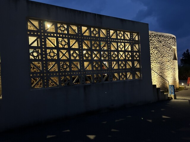 周りに何も無い暗い道を進むと灯りが見えて来る。