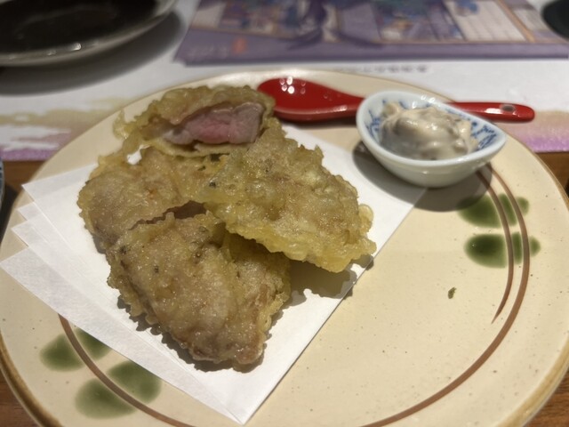 銀座に店を構えるとある高級天ぷら屋さんの系列店で、食材は共通のものを使っているとのことですが、恐ろしく高いコスパを誇る素晴らしいお店だと思いました。いわゆる創作天ぷらという雰囲気ですが、(恐らく)細心の注意を払い素材の味を邪魔しない様に良質の油で揚げられた逸品達は、殆どの人が天つゆや抹茶塩等を付けなくとも美味しく食べる事ができる様に調理されていると感じました。カマンベールチーズの天ぷらは(恐らく)オリーブオイルで揚げてあるのではないでしょうか。もしそうであれば、かなりコストがかかっているはずです。それでこの値段は驚異的だと思います。