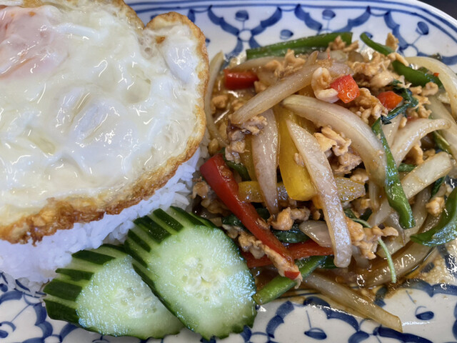今回は、パッタイ、エビチャーハン、揚げ春巻きをオーダーしました。