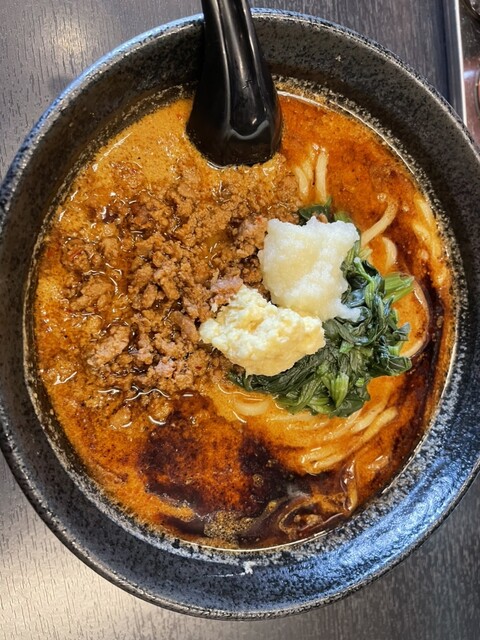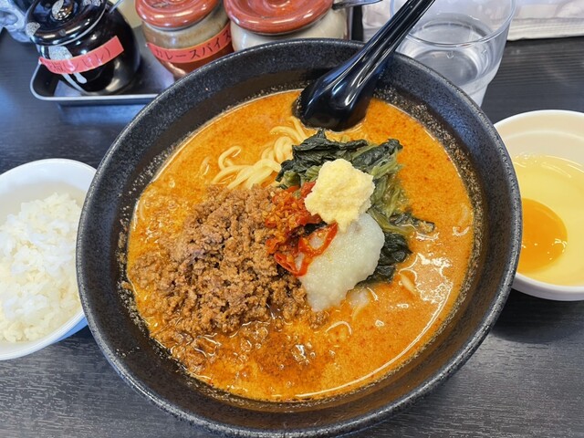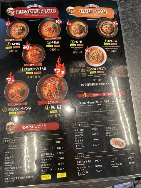 いつもは、二辛の黒マー油なのだが、今回、五辛の地獄の担々麺入門編を、相方も、いつもより辛さあげて、中級を注文。無料サービスのニンニク、生姜、小ライスは、もちろん追加。辛さに備えて、生たまごも準備。容易万端。