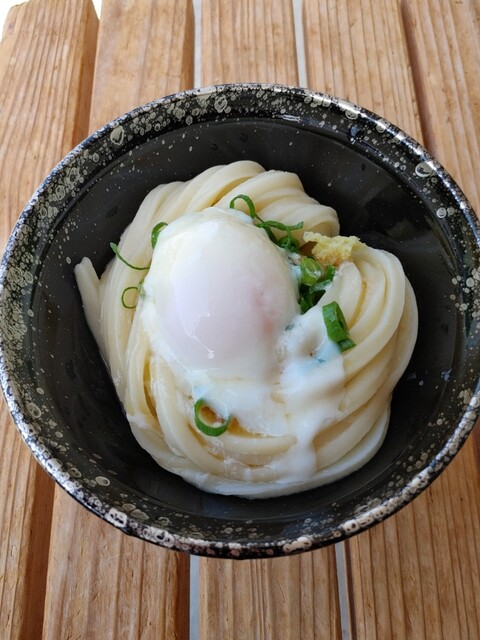 やがて順番が来てうどんを受け取り温泉玉子を割り入れ醤油をかけてレジへ進み精算