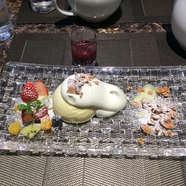 お店で食べるケーキはお皿もオシャレで気分も上がります。