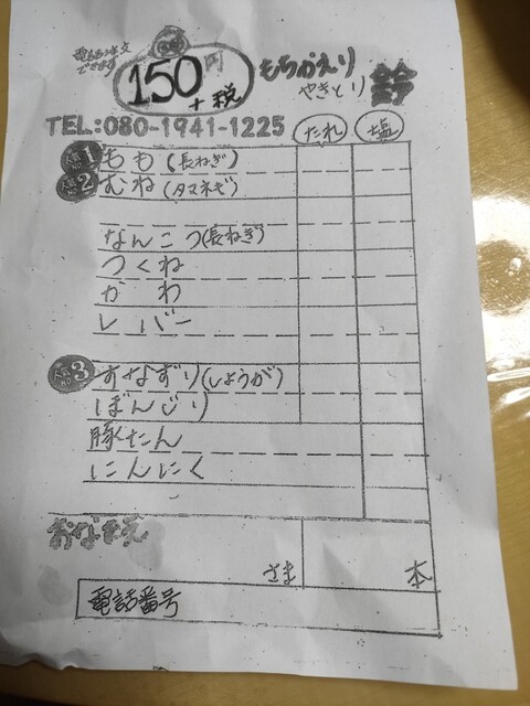 焼き鳥のテイクアウト専門店です。