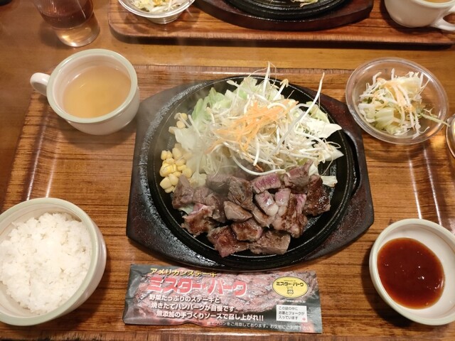注文したのは、健康バーグビーフ、黒毛アンガースサーロインステーキ、チーズチキンステーキ、味わいステーキ、ちびっこセット。
