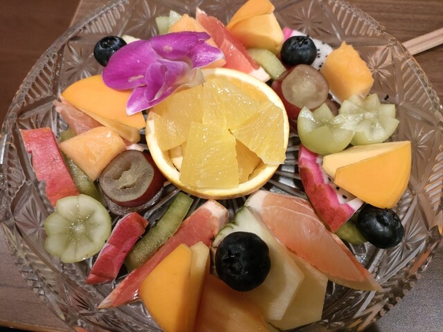 部屋の冷蔵庫に入ってたフルーツ盛り合わせ