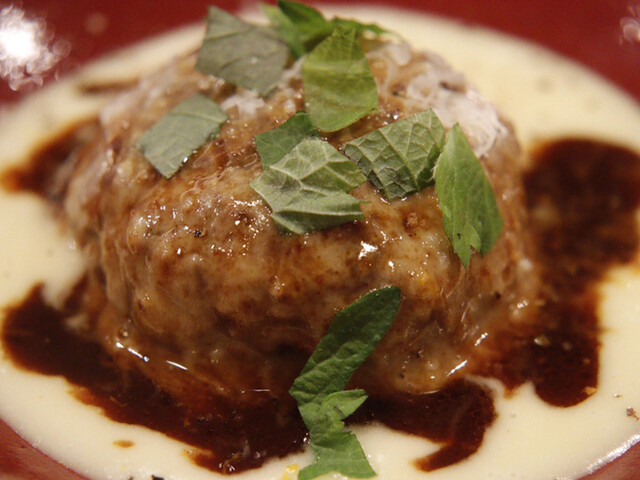 ~ホホ煮 枝豆と男爵芋のソース、味噌のデミグラス