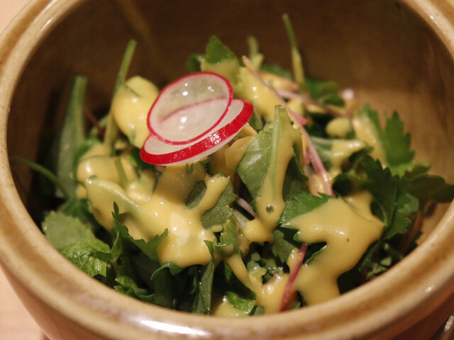 塩、葱ソース、粒マスタードと玉葱のソースで。