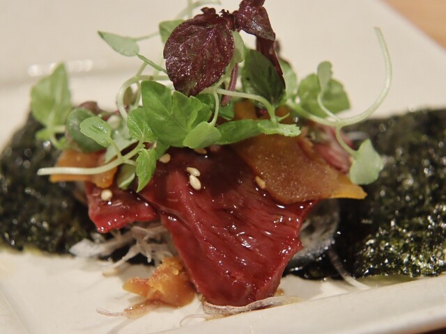~フィレとウナギのタルタル オレンジのタルタル、とろろ、キャビア