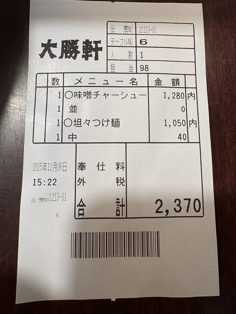 仙台大勝軒(八乙女、泉中央、黒松/つけ麺、ラーメン、餃子)
