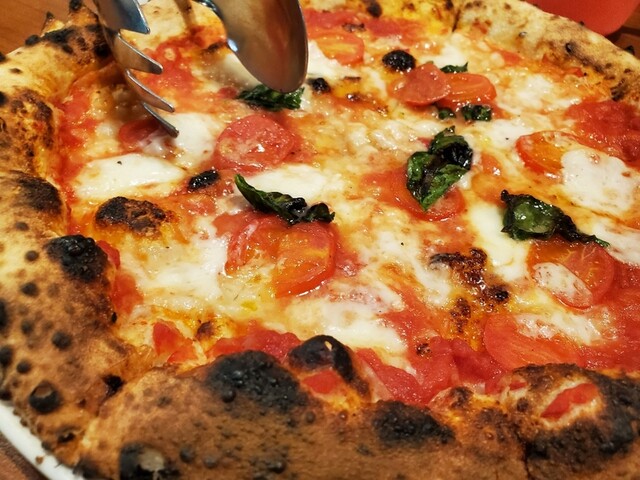 オーダーはホタテとタコのカルパッチョ、ピザを2つ。