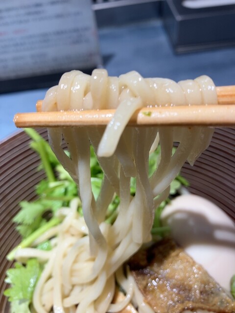 麺は醤油よりも太い手揉み麺で、柔らかく喉越しがいいです。つけ汁に漬けなくても味があって美味しいです。