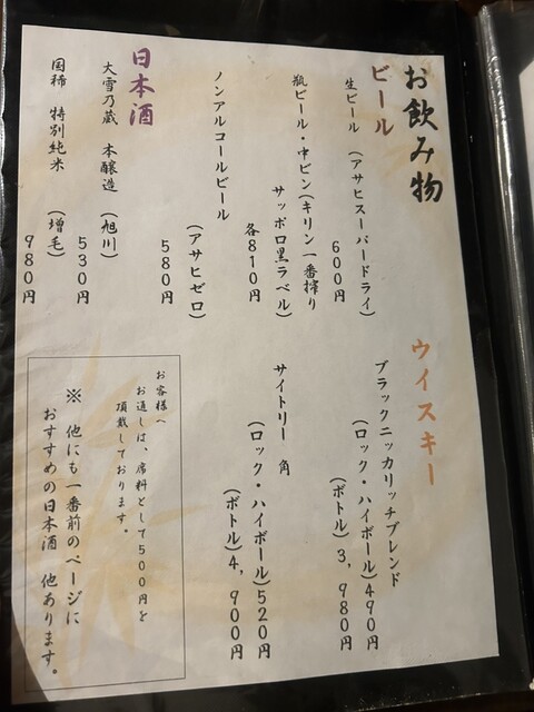 飲み放題がないのでお酒好きさんは