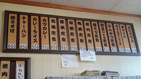 さすがお肉屋さん。 定食メニューは、豚モツ、焼肉、鴨肉、桜鍋、豚鍋、鶏鍋と、オールスターのそろい踏みです! そして、このお店もセットメニューの王国でした。