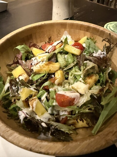 今回は野菜鍋のコースにしました。相変わらず五十家グループは賑わってます。その原因はスタッフの質の良さですね。若い人達がキビキビと働いているんですが、無駄な動きがなく、笑顔を絶やしません。途中で瓶を割ってしまわれるというハプニングがありましたが、1番近い私達に驚かせたお詫びに一品サービスしてくれました。このような配慮が普通に出来る素敵な店です。入店三回目の新人への指導もとても好感が持てる教え方でした。さて料理は前菜のサラダとカルパッチョ、そして野菜鍋、揚げ物、メインの鳥料理など、凄くスムーズなサーブをしていただけました。やはり野菜は美味しいです。私はズッキーニが気に入りました。デザートもお茶のプリンとそのお茶で締めてもらえます。良いお店です。ご馳走さまでした。