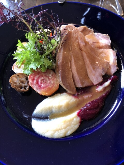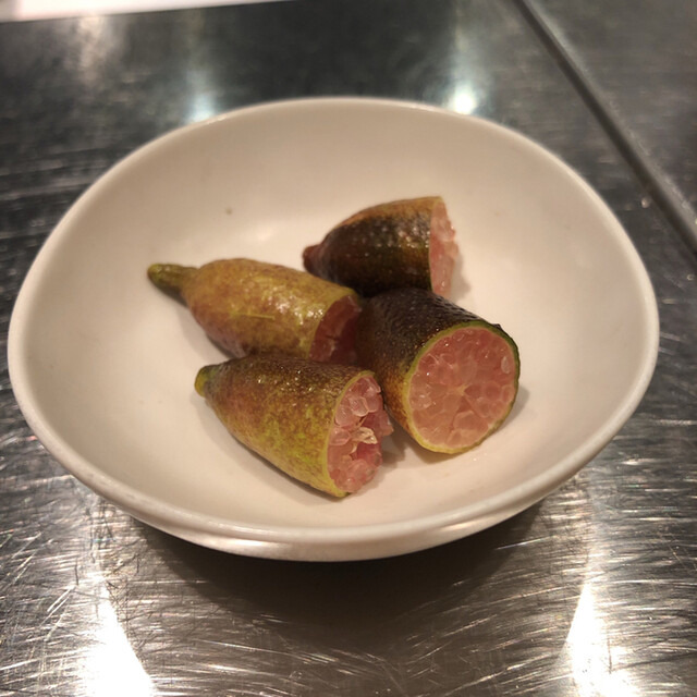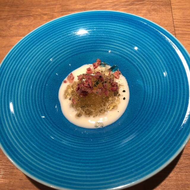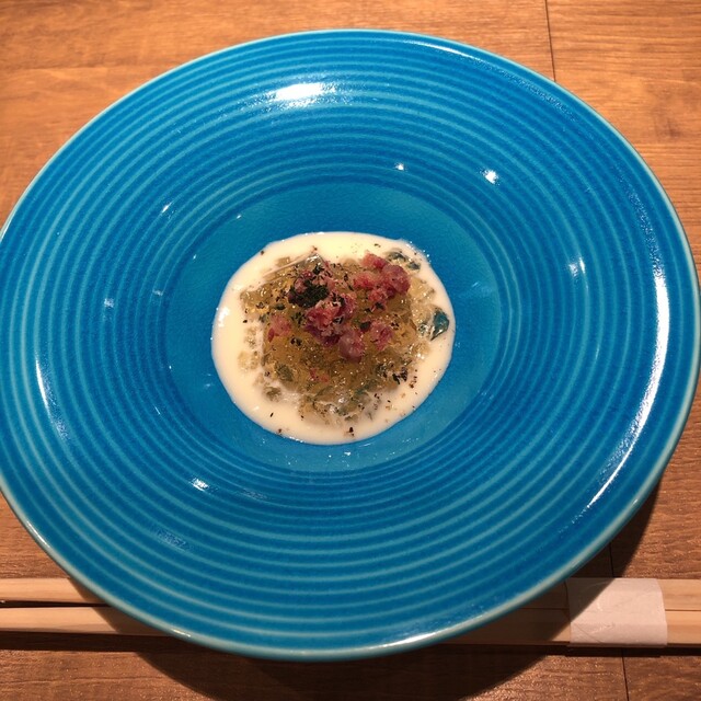 今日は4hans dinner と題して吉徳シェフと中原さんのコラボディナー。真魚鰹とシマチョウのピルピルソース、和牛タタキとトンナート、トリッパのブリオッシュバーガー、銀の鴨と牛ハツ、スイカバーなど初めての組合せばかり。お2人の無限の想像力に感服。