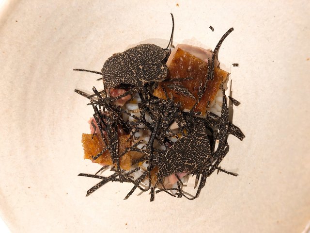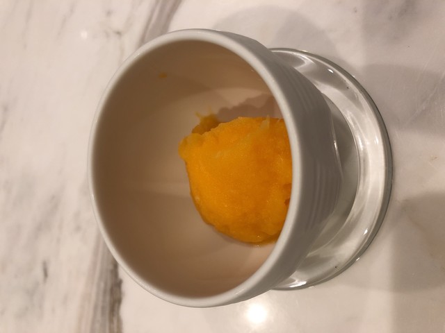 今日は桃の入ったシャンパンで乾杯。
