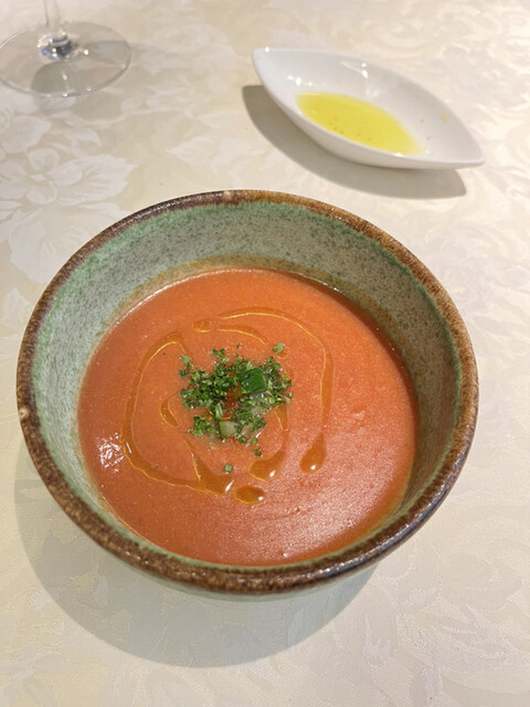 さっぱりとしてトマトの甘みと酸味がバランスよき逸品。きゅうりの角切りがシャキッとして美味しい〜