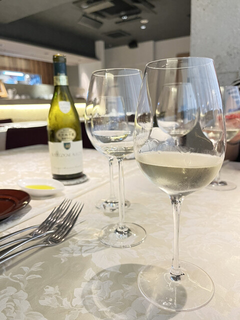 楕円形のグラスのワインは、時間が経ってもワインに深みがあって柔らかさがある。