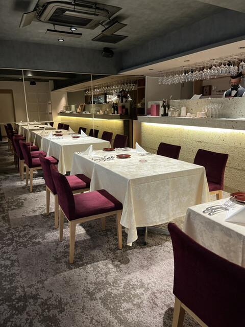 きっちりと敷かれたテーブルクロス、赤ワインカラーの椅子。
