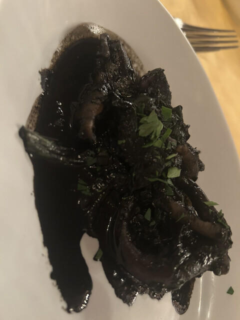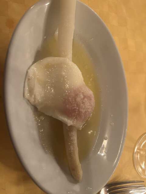 お店に入った途端中はイタリア。この日の食材の説明から始まり。どれも美味しそうなのでいろいろつまんでいただく。特にイカスミ料理とホワイトアスパラがとてもおいしかった。イタリアビールから始まり、白ワインを皆で堪能し最後にグラッパで閉める。