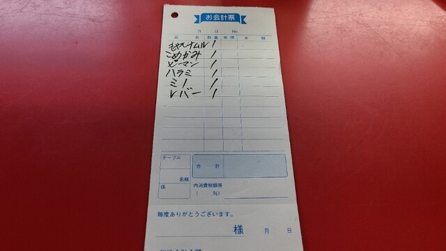 飲み物は口頭で注文、食べ物は紙に書いて提出するスタイル。