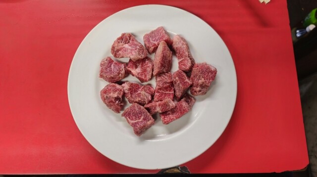 コメカミは画像の通り、サシが細かく入っていて、適度な弾力がある。