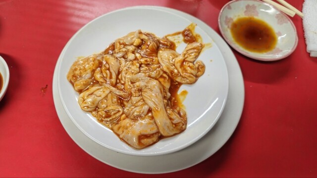牛こめかみとピーマン、牛生タン、牛ハラミは外せないが、今回は豚も3皿たのんだ。
