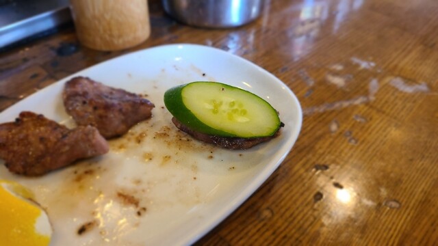 厚切りの豚タンをシンプルな味付けで炭焼きにします。