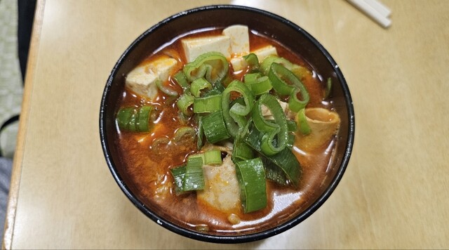 豚ホルモンの色んな部位がゴロゴロっと入ったスープで、見た目は辛そうだが、全然そんな事なくて。