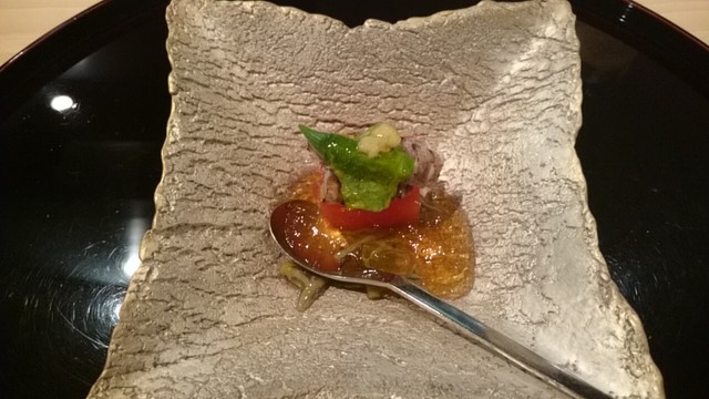蓴菜や蝦蛄、出汁のジュレと共に。