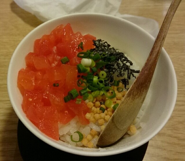 鴨はちらーめんと〆のトマト茶漬けを注文。