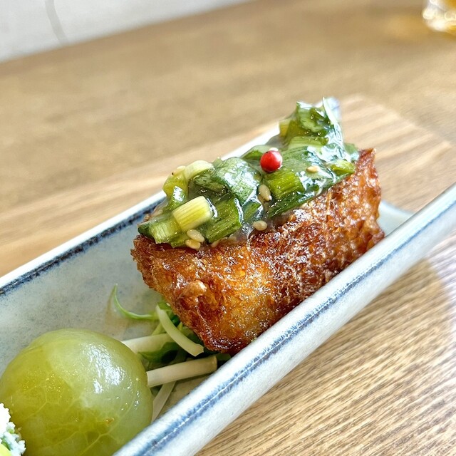 蒸し鶏 葱と青山椒のソース