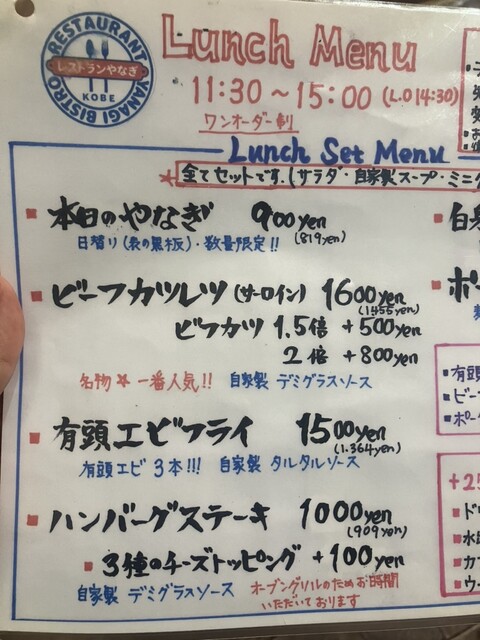本日のやなぎ900円にビフカツ600円とエビフライ400円をトッピング。