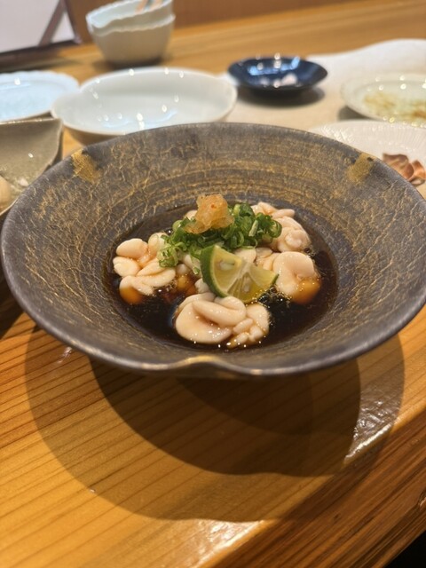 お通し、お刺身、ふぐの唐揚げ、ヒレ肉、、、