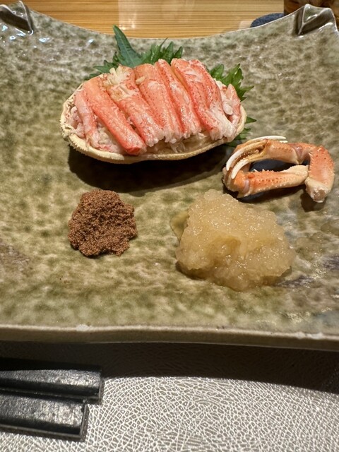 食べすぎ注意⚠️今日のメインは蟹!と思ったが、結局肉もしっかり食べてる。はまぐりあるよと言われれば注文!たけのこあるよと言われれば、これまた即注文!こうやって食べるものがどんどん増えていく。最近のお気に入りはさつまいもの素揚げ。天ぷらもいいけど、素揚げの方がさつまいもの甘味をダイレクトに感じられる。〆は鯛茶漬けこれも美味しい。写真に載せてないけど、いかの塩辛、酒飲みにはサイコーのおつまみです。