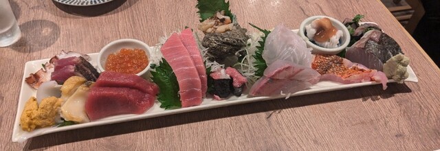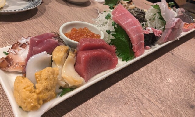 ハシゴ飲みをするために控えめで注文しましたが、どれもとてもクオリティが高く、特に刺盛りは炙ってあったり、ソースがかかってたり、のりに巻いてあったりと、工夫がたくさんしてあり、種類も豊富でかなり美味しかったです。