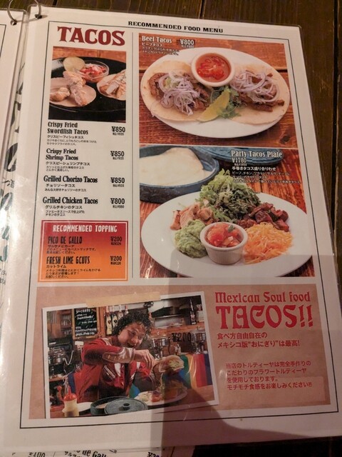 タコスもとても美味しかったです。トルティーヤはカリカリじゃなくてしっとりしたものでした。