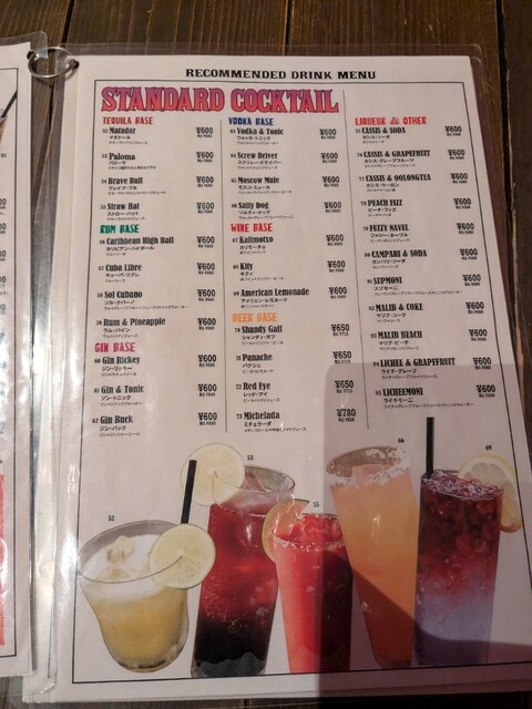 カクテルは種類豊富で、ピニャコラーダもマルガリータも美味しかったです。酒が尖っていなくて、味がちゃんとしてる。