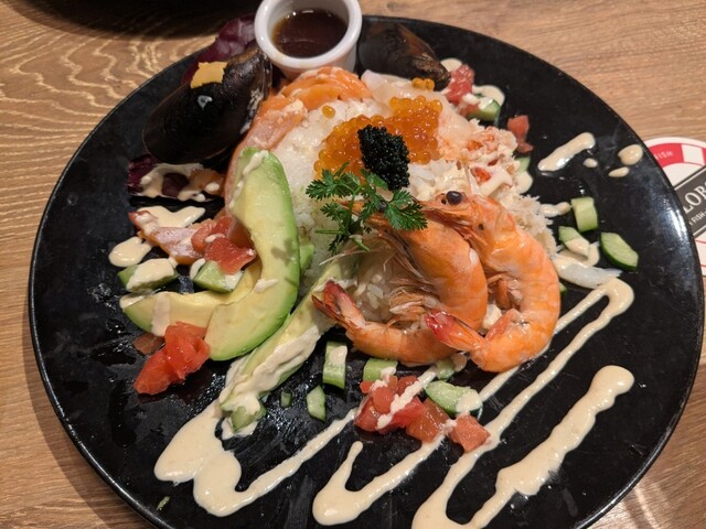 注文前はただのシーフードが乗ったプレートだと思っていましたが、ライスの上に様々なシーフードが乗った、まさに洋風海鮮丼。