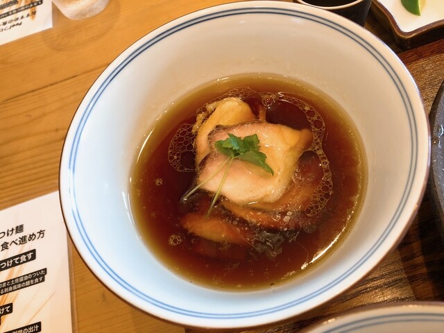 最初は塩、そのあとつゆ、最後にだし汁を麺にかけてと、つけ麺の食べ方がいろいろ書いてありました。