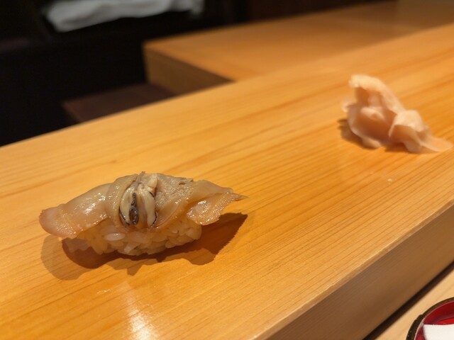 肉厚で有りながらも丁度良い柔らかさは流石の仕立て!咀嚼しながら磯を感じる。そして海苔の余韻