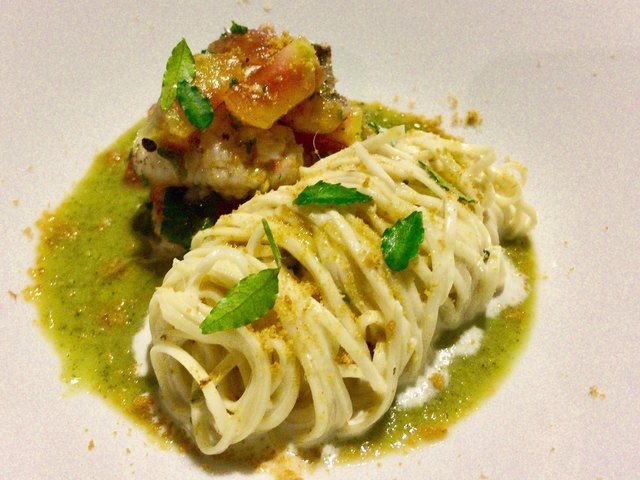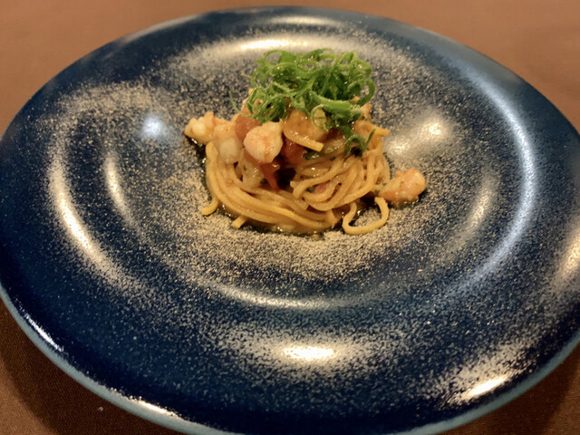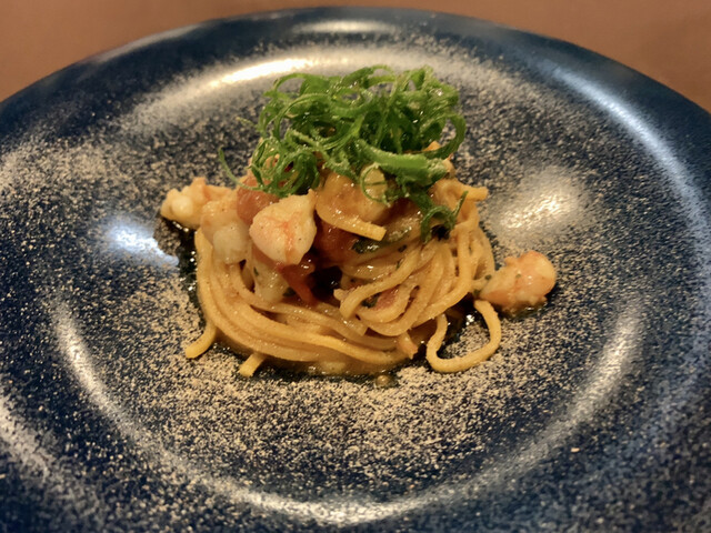 メジマグロの旨味にオイリーさを纏わせて奥行きのある旨味が広がります生パスタの食感が楽しい