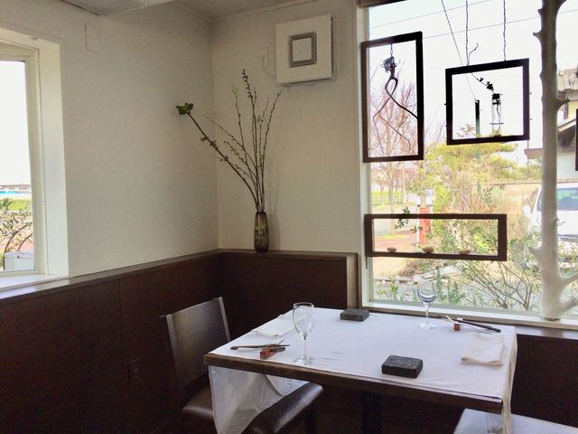 内装は白を基調とした落ち着く感じで14席程のプチレストランです