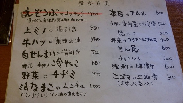 そのほか、チヂミなどもあり、他にも興味あるメニューがたくさん。次は何を注文しようかな・・・・